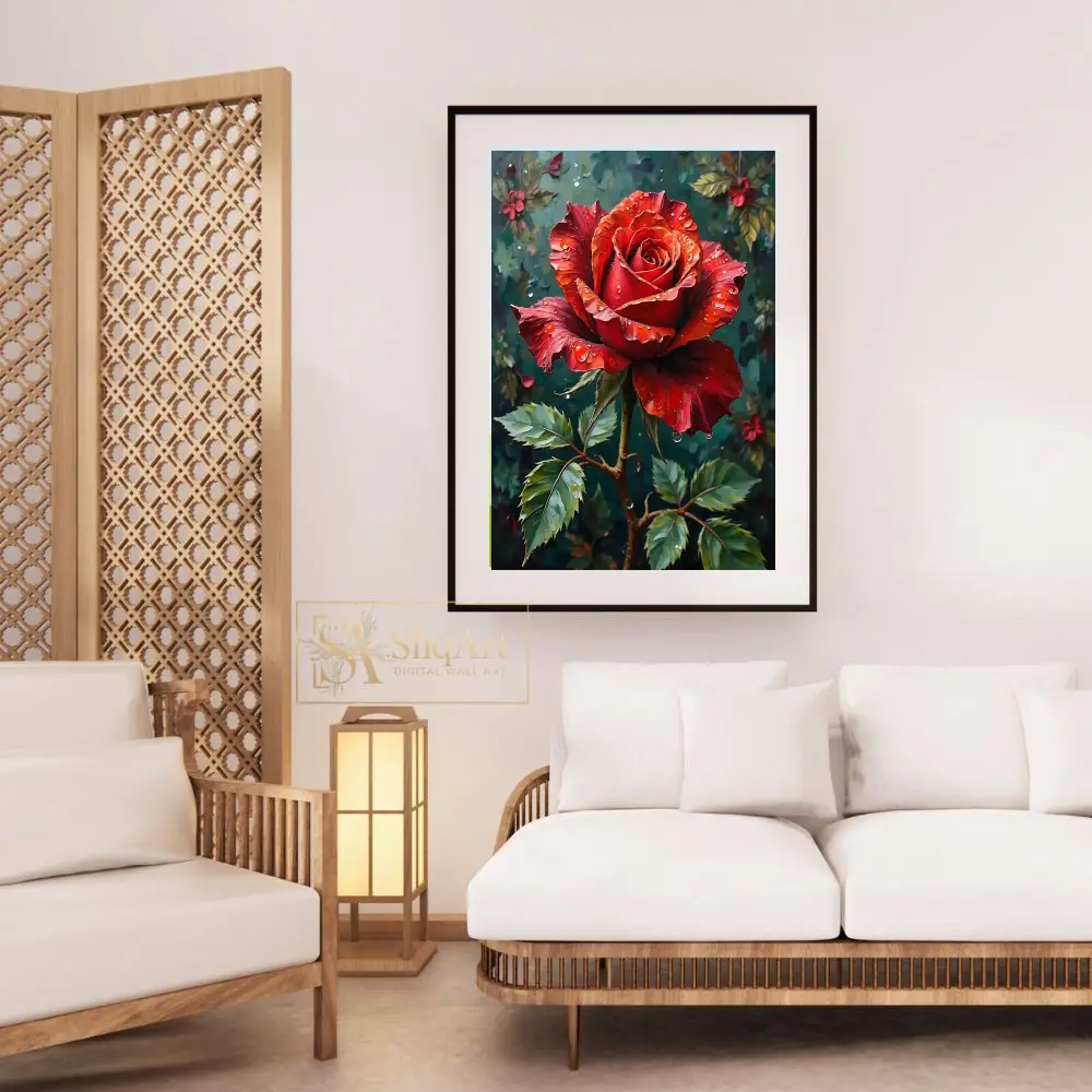 Be the first to review “Vibrant Red Rose with Dewdrops Botanical Wall Art”