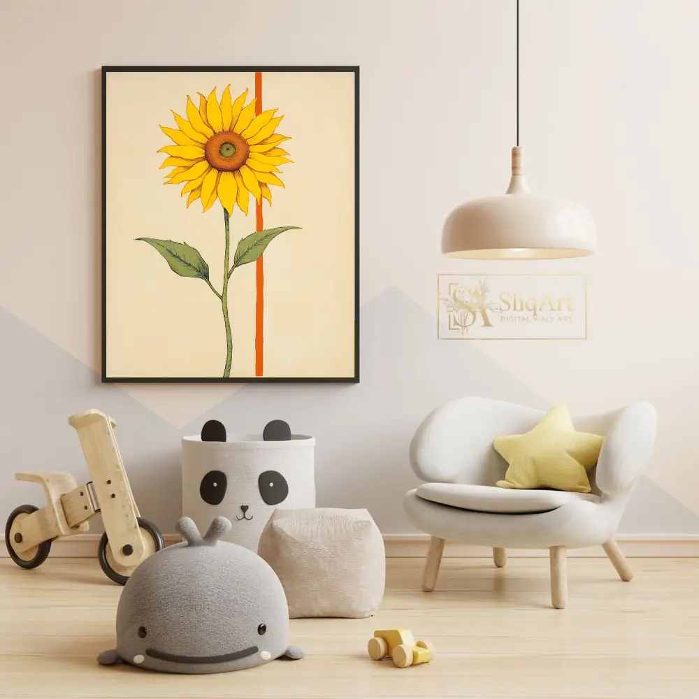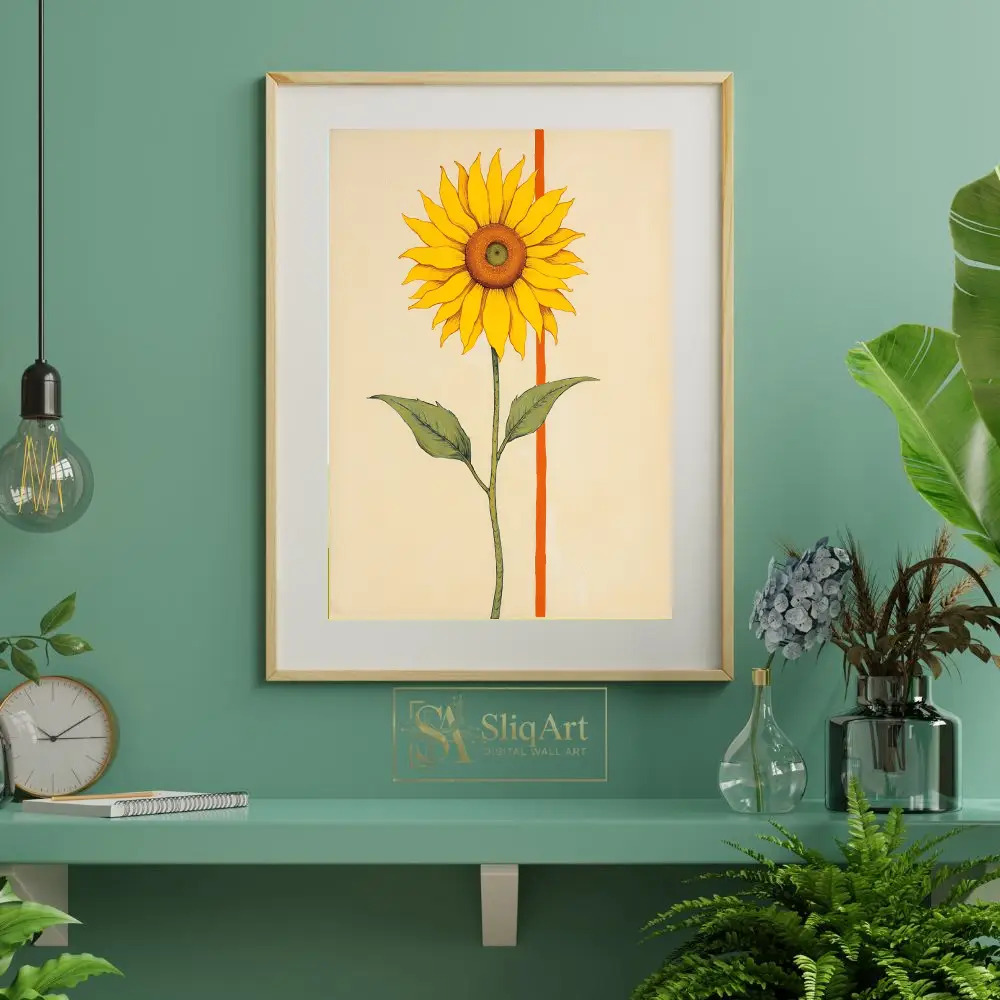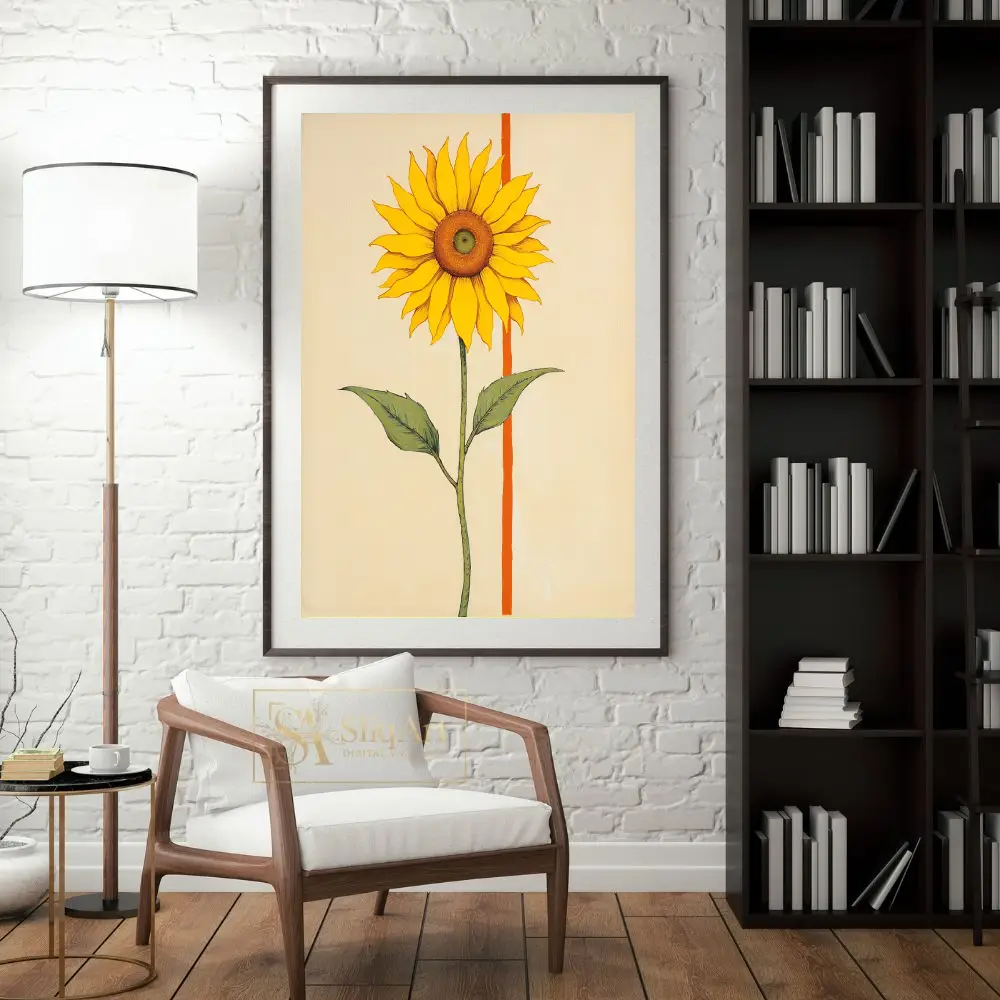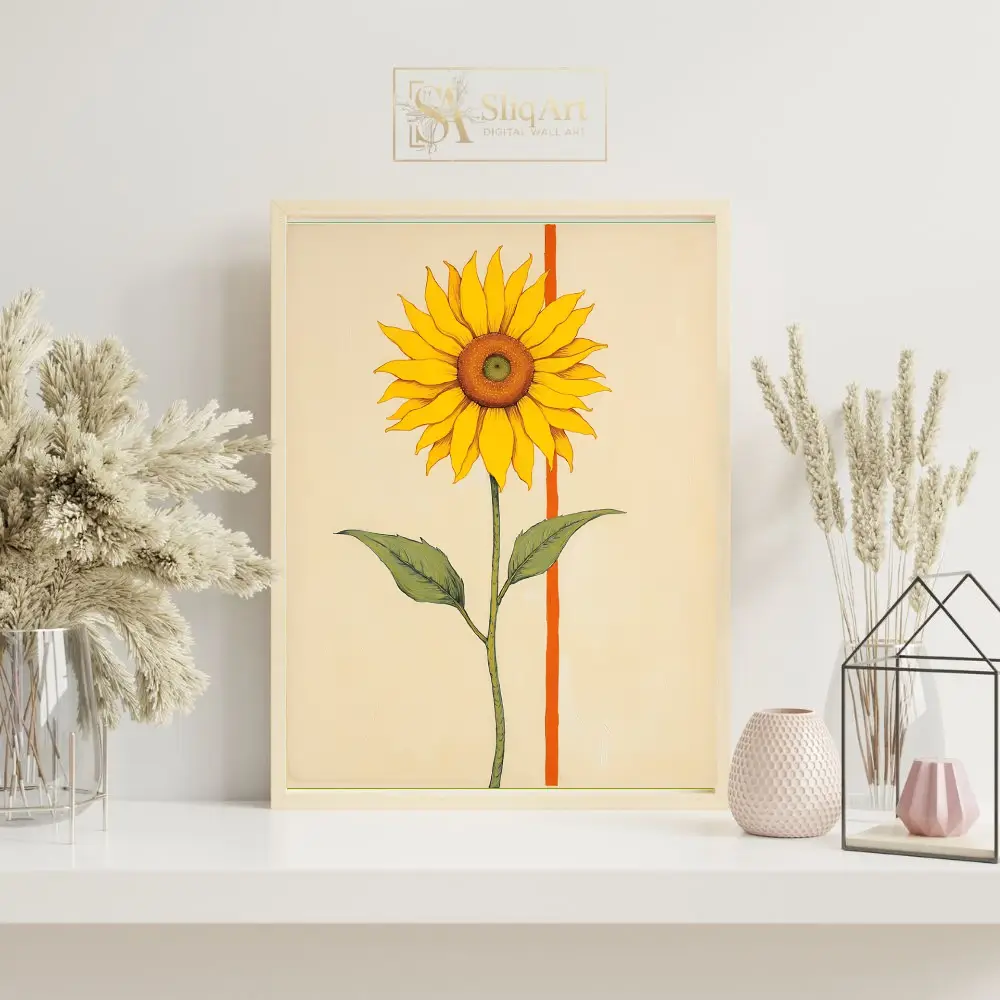 Bring a burst of sunshine into your home with this contemporary minimalist sunflower art.