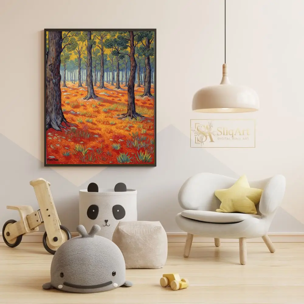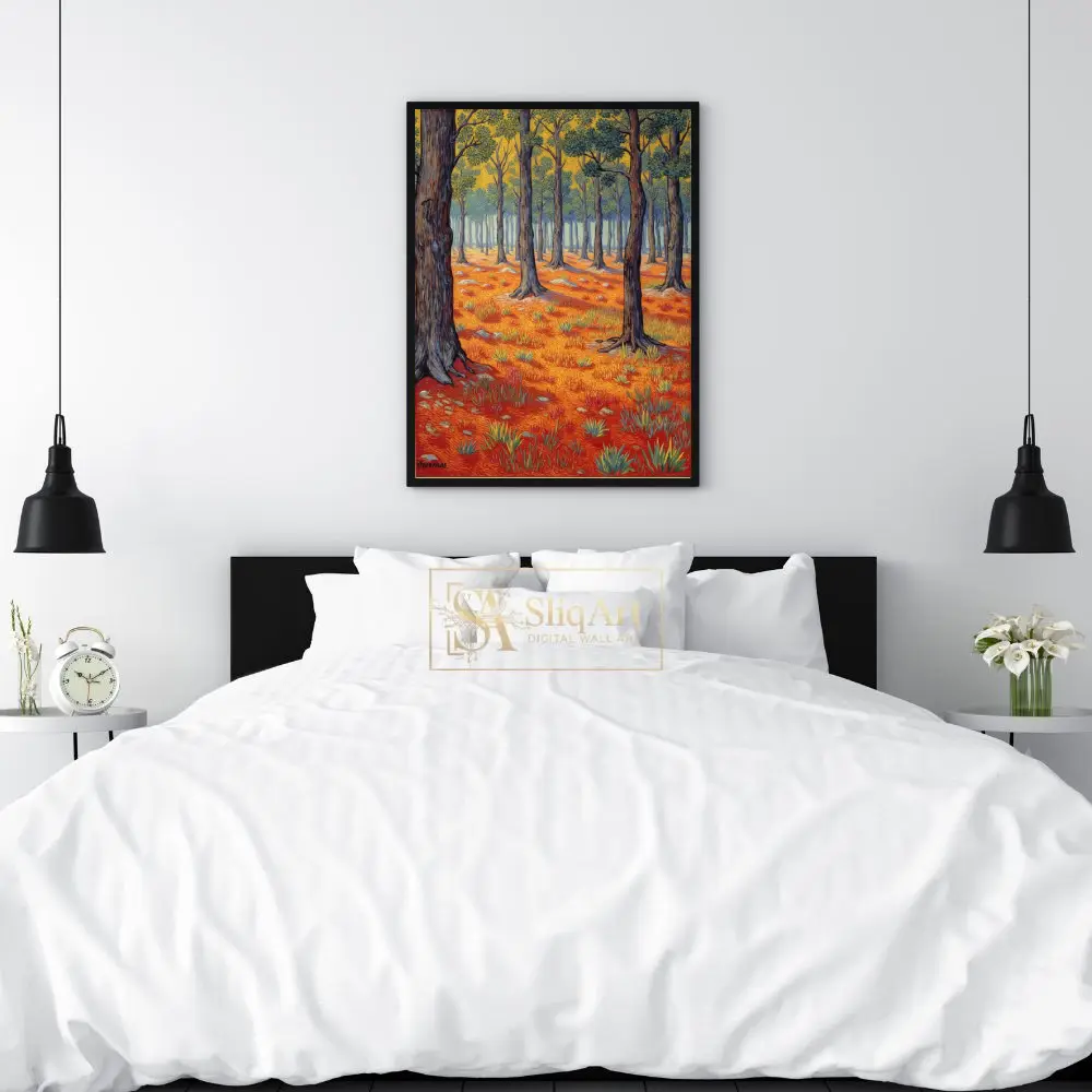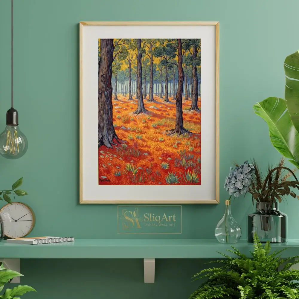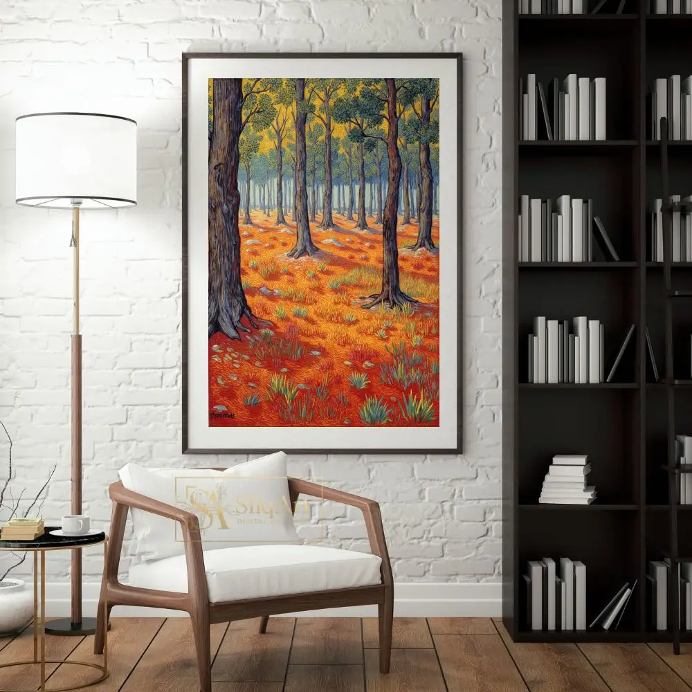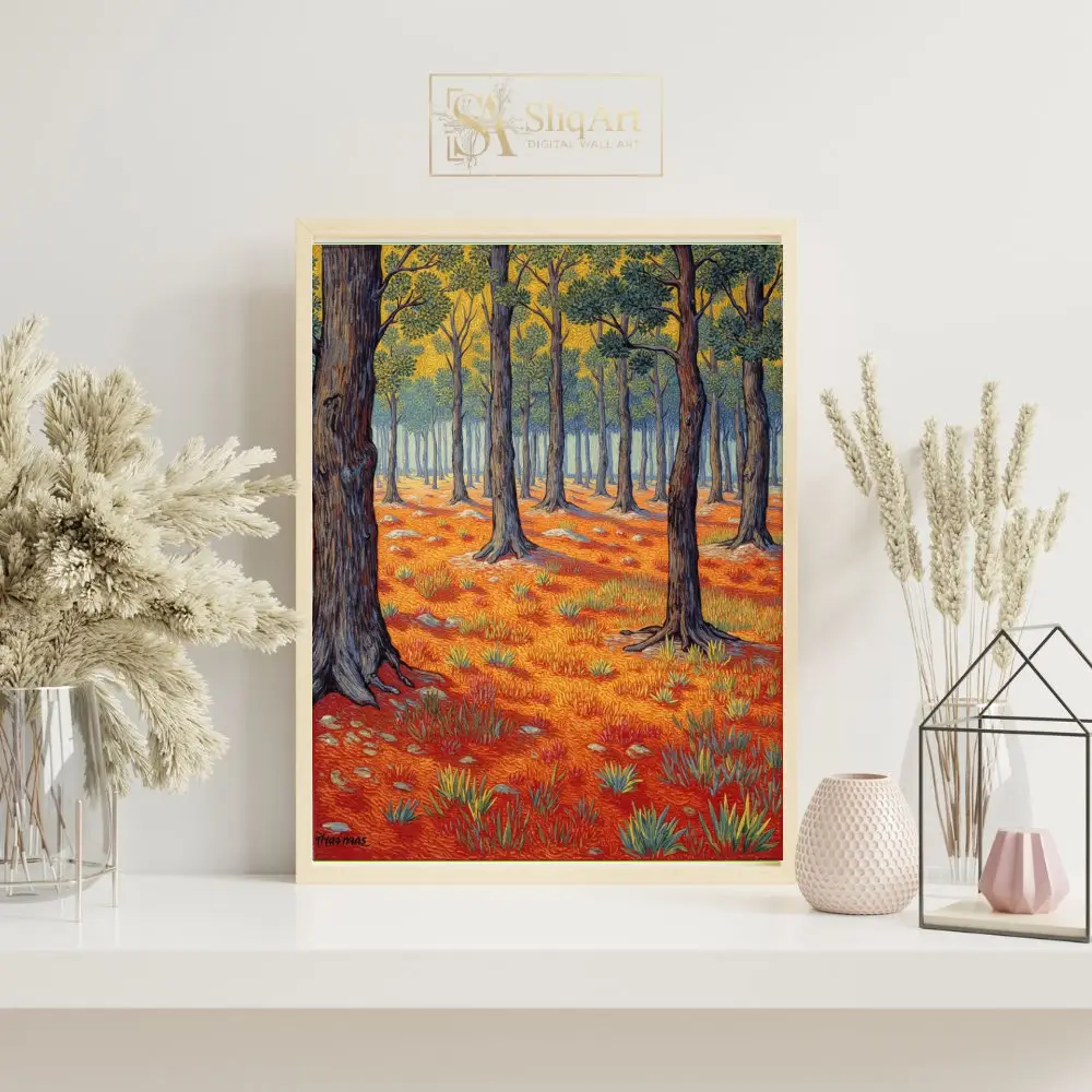 Transform your space with this stunning Post-Impressionist style forest landscape. Featuring a rhythmic interplay of textured brushstrokes, this piece captures the essence of a sun-drenched woodland.