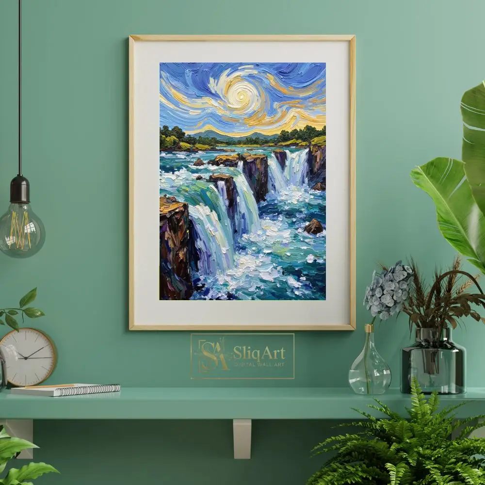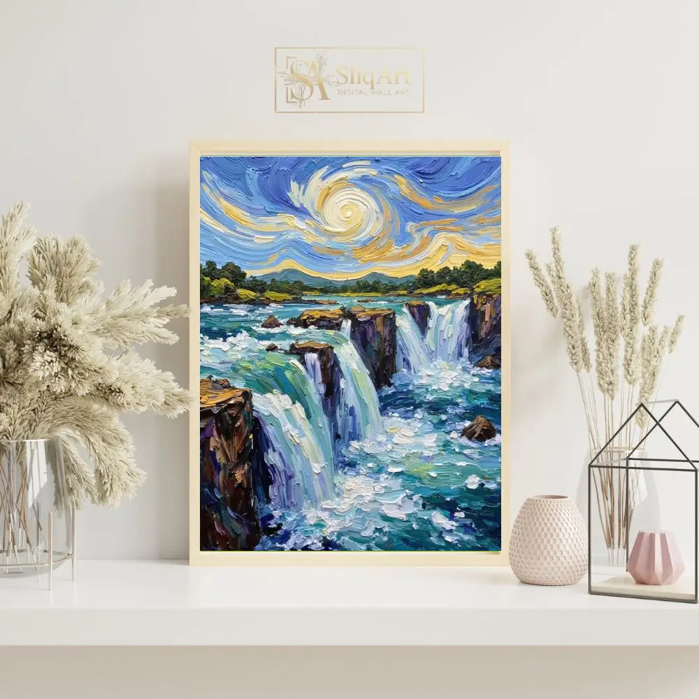 Be the first to review “Impressionist Waterfall Canvas Art – Swirling Sky Impasto Painting”