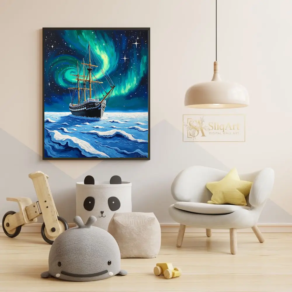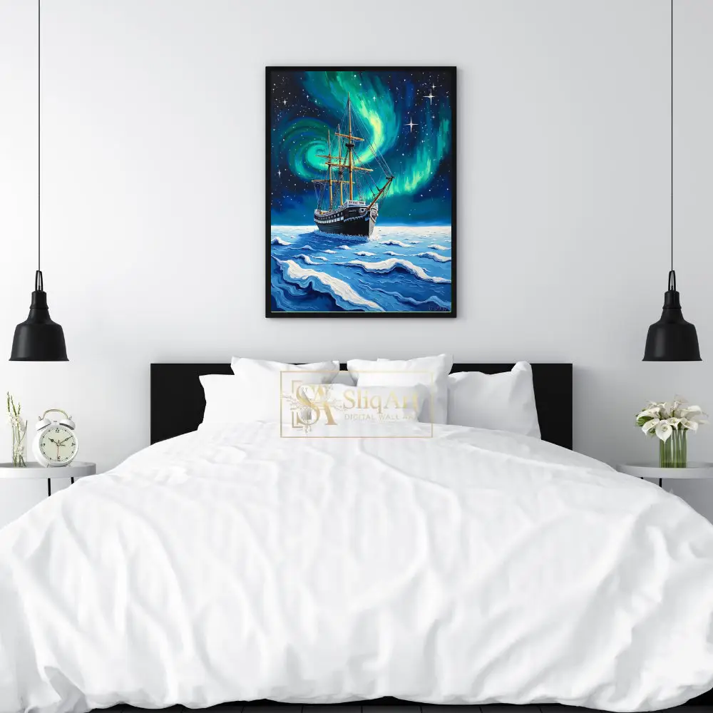 Be the first to review “Celestial Voyage: Ship Under Northern Lights Canvas Art”