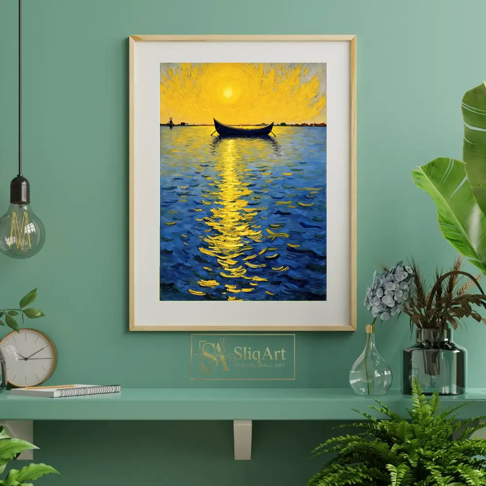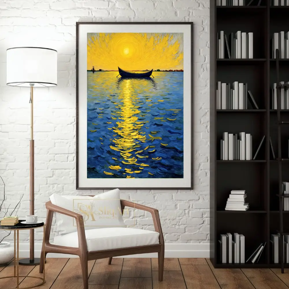 Be the first to review “Golden Horizon: Van Gogh Style Boat at Sunset Canvas Art”