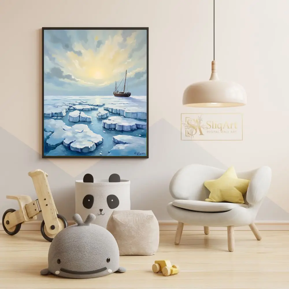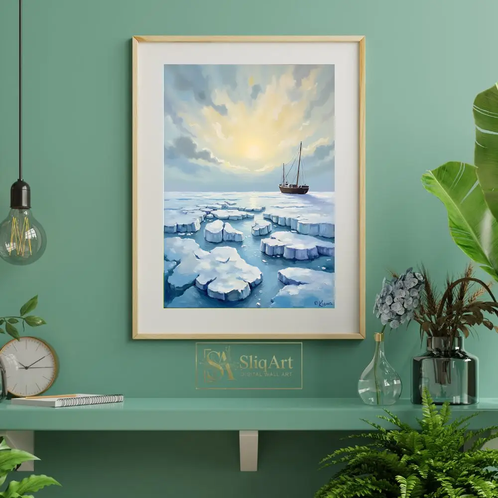Arctic Expedition Oil Painting – Serene Ice Floe Wall Art