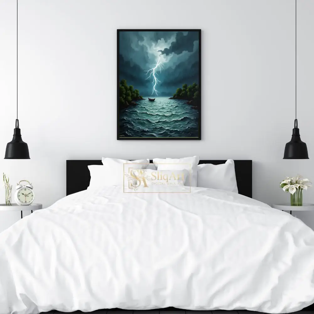 Be the first to review “Dramatic Lightning Strike over Stormy Sea Digital Art Canvas”