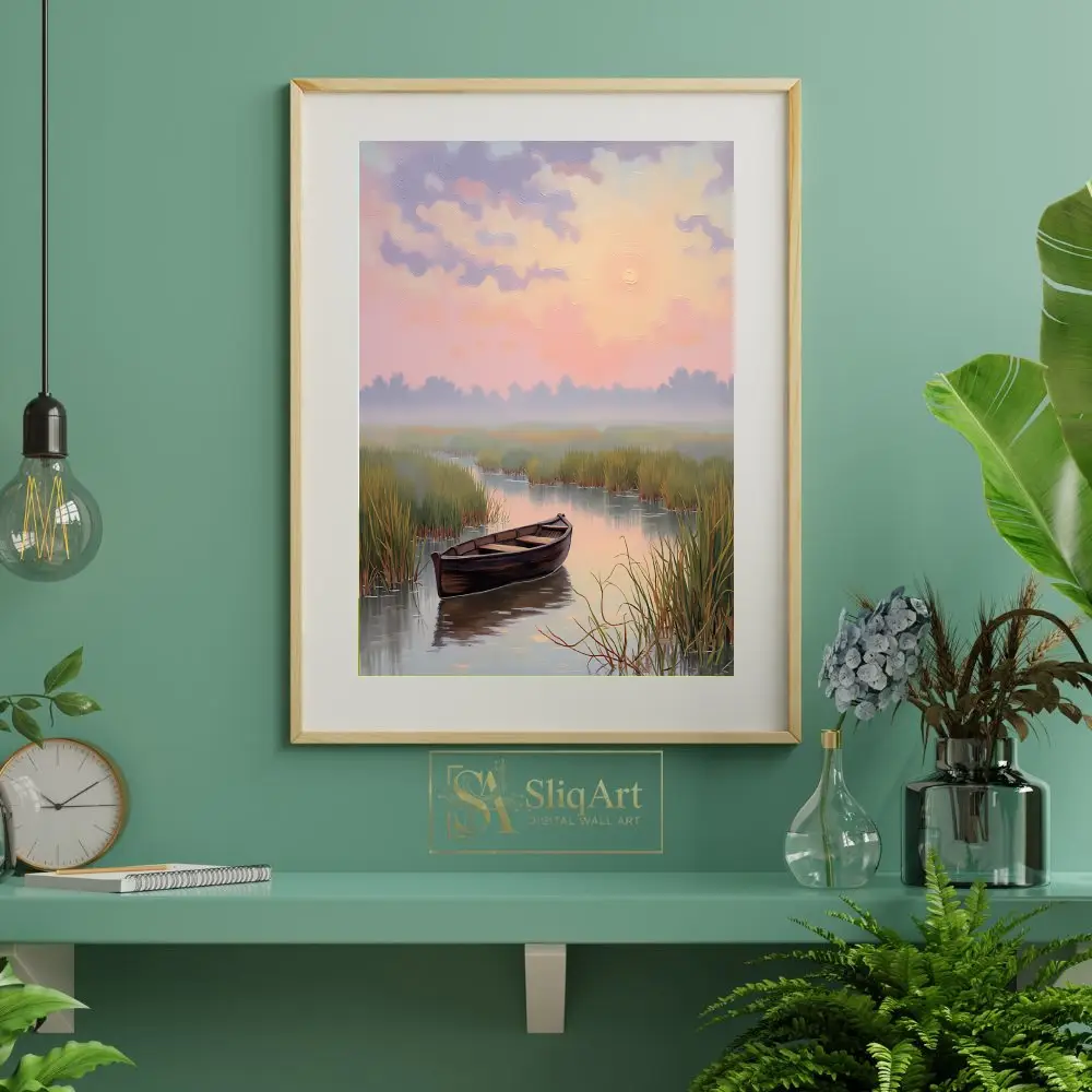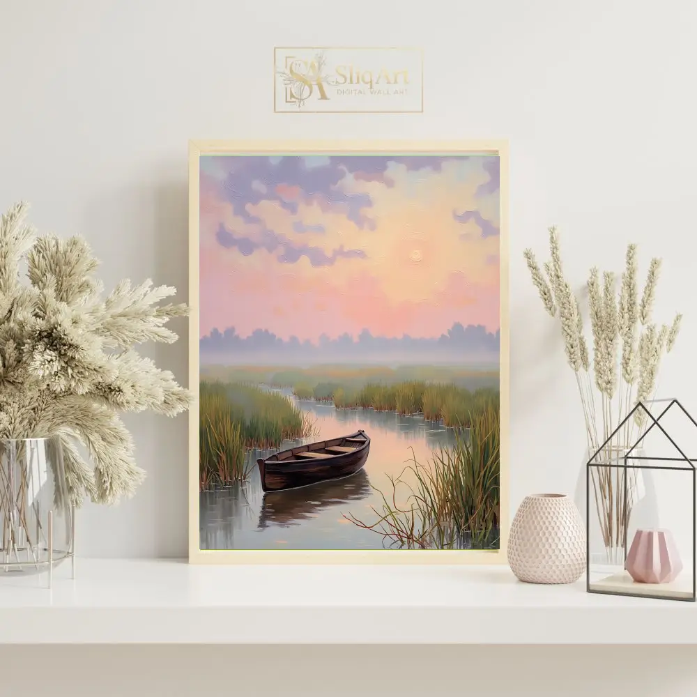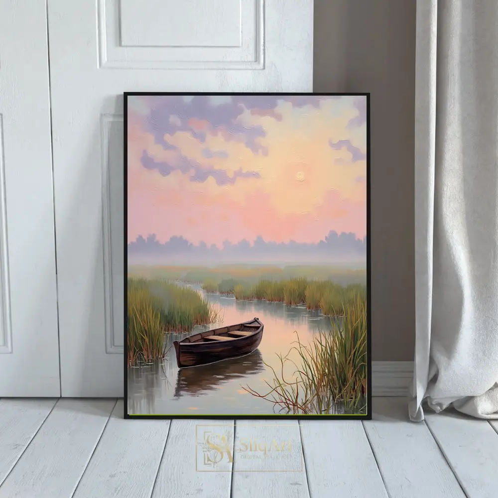 Be the first to review “Serene Rowboat at Sunset – Impressionist Marsh Landscape Art”